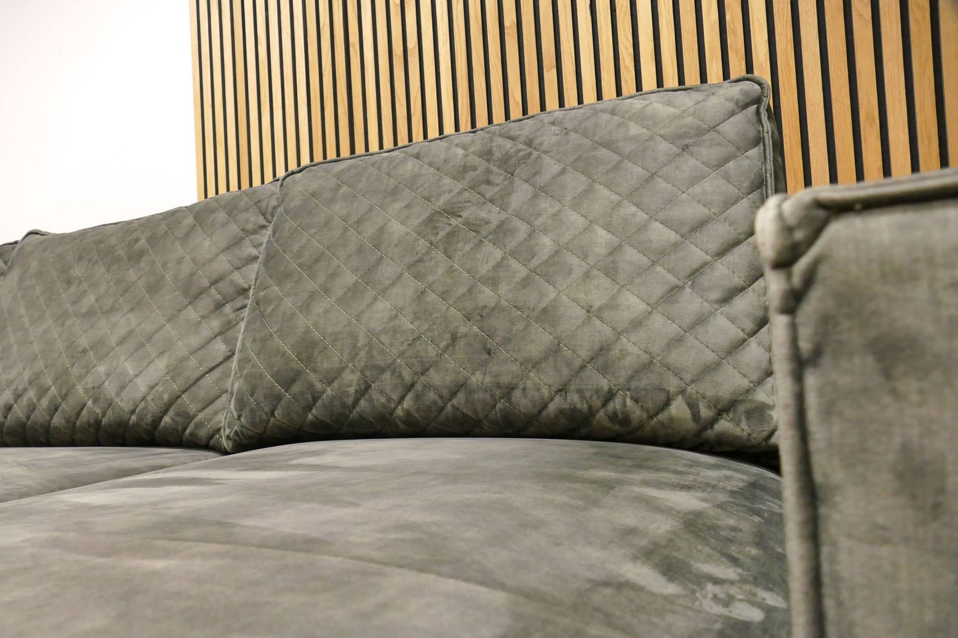 Urban Sofa hoekbank in groene velvet stof met afneembare rugkussens. Comfortabele zit met een natuurlijke en moderne uitstraling.