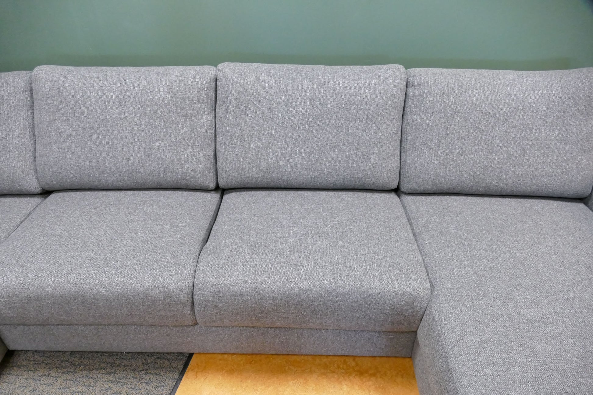 Pronto U-bank in grijze gemêleerde stof met afneembare rugkussens en een comfortabele zit. Royale opstelling met moderne en industriële uitstraling. Opgevuld voor langdurig zitcomfort.